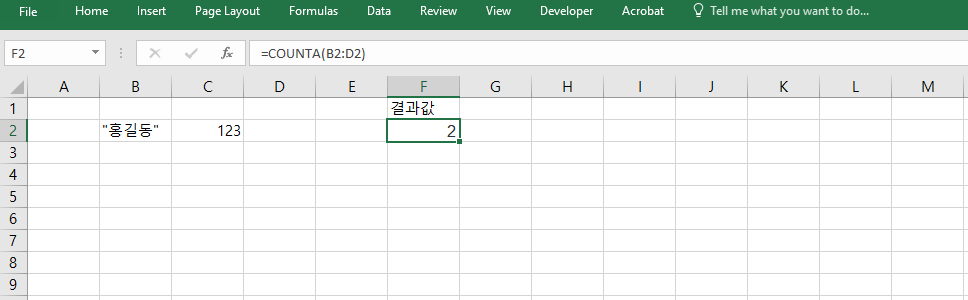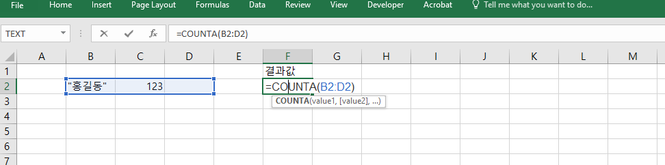 =COUNTA(B2:D2)은 하나의 행 안에서 숫자와 텍스트, 수식 결과가 혼합되어 있는 경우에도 정상적으로 값을 세줍니다. 예를 들어 B2=“홍길동”, C2=123, D2=“”인 경우, 결과는 2가 됩니다. 공백 문자열("")은 내용이 있는 것으로 간주되어 카운트되지만, 완전한 빈 셀은 제외됩니다. 이 특성 덕분에 텍스트 필드와 수치 필드가 섞여 있는 양식을 빠르게 분석할 수 있습니다.