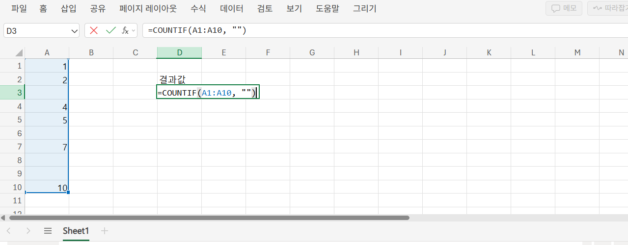 =COUNTIF(A1:A10, "")는 A1~A10에서 빈 셀의 개수를 세며, ISBLANK는 단일 셀 판단용이지만 COUNTIF와 결합하면 범위 내 빈 셀 수 확인도 가능합니다. 둘을 병행 사용하면 시트 전체의 입력 상태를 정리할 수 있습니다.