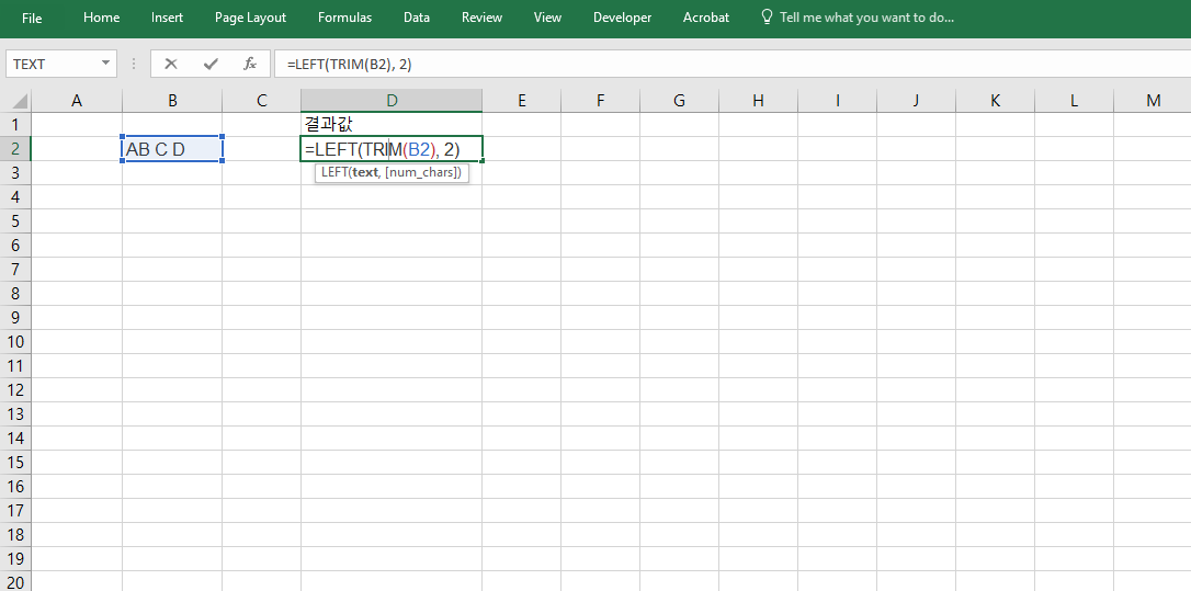 =LEFT(TRIM(B2), 2)처럼 다른 문자열 정리 함수와 결합하면 불필요한 공백 제거 후 앞의 2자만 추출할 수 있습니다. 텍스트 정리가 필요한 입력값이나 복사된 데이터를 가공할 때 특히 유용하며, 실제 데이터 전처리 작업에서 실수 없이 정확한 문자 추출을 할 수 있도록 돕습니다.