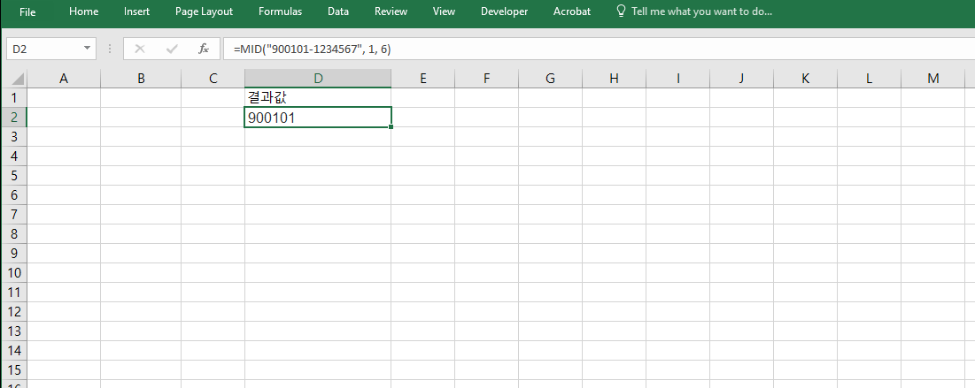 =MID("900101-1234567", 1, 6)을 사용하면 앞의 6자리인 "900101"을 추출할 수 있습니다. 이 방식은 주민번호, 사업자번호, 계좌번호 등에서 특정 구간의 데이터를 추출할 때 활용되며, 사용자가 직접 시작 위치와 길이를 지정하기 때문에 매우 정확한 추출이 가능합니다.